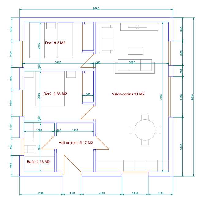 - Porche: 750 €/m2 (Incluye porcelánico antideslizante, instalación eléctrica (1 toma de corriente + toma TV + toma datos), instalación fontanería (1 toma de agua) y falso techo de pladur hidrófugo).
